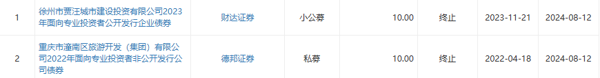 “重庆市潼南区旅游开发(集团)有限公司2022年面向专业投资者非公开发行公司债券”项目状态更新为终止。该债券拟发行金额为10亿元,承销商/管理人为德邦证券,受理日期为2022年4月18日。