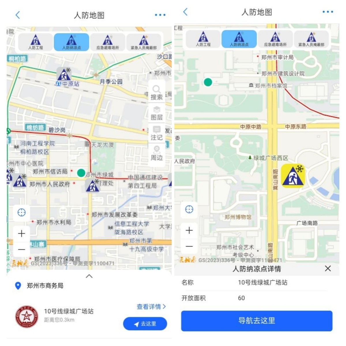 今年以来,郑州市人防办根据实际需求,对纳凉点布局进行了大幅调整和优化,纳凉点数量较去年新增了20处。新增纳凉点主要依据覆盖群众较多、工程结构安全、交通畅达便利、内部设施完善等条件进行选址优化,集中在人流量较大的地铁站点、住宅小区、大型商业等周边。市民群众只需打开郑好办App,搜索“人防地图”,便能轻松找到身边最近的避暑纳凉场所,还可了解附近的人防工程和疏散掩蔽场所等信息,便捷又实用。