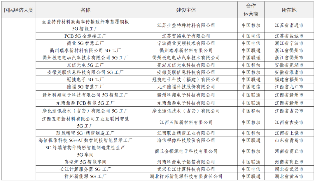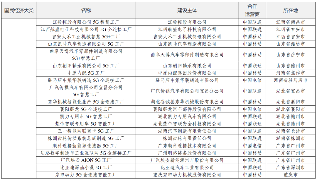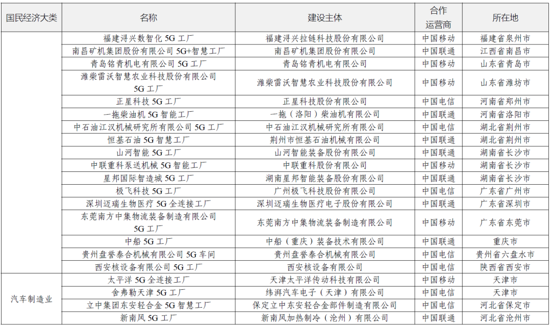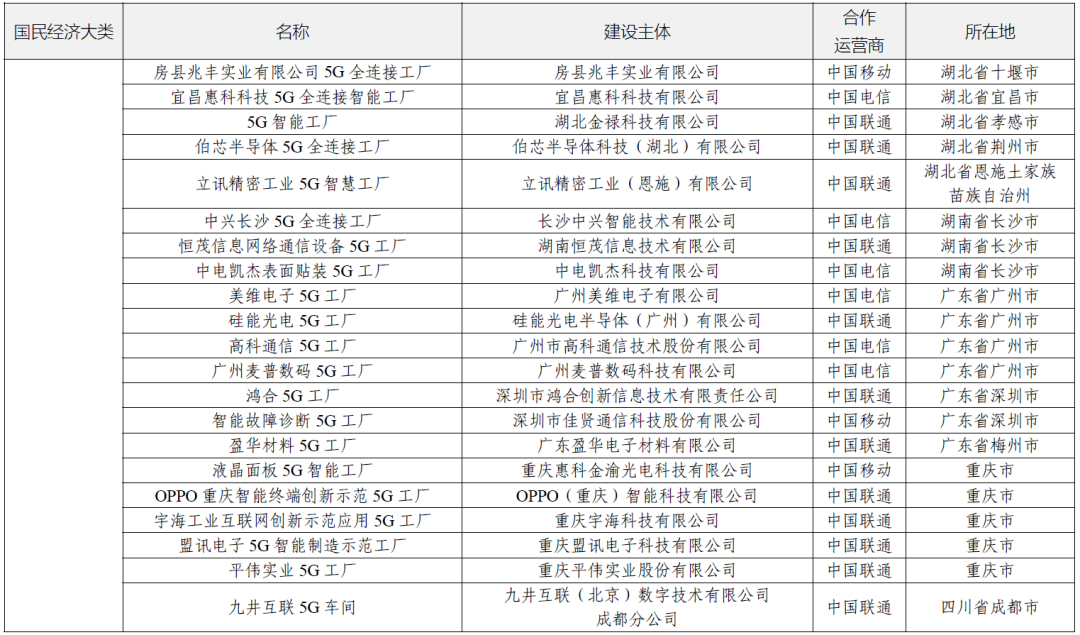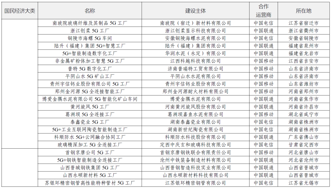 名单显示,新桥煤矿5G智能矿山车间、濮阳展辰树脂合成5G车间、曙光汇知康智能化5G工厂、郑州金河源5G全连接智能工厂、博爱金隅水泥有限公司5G智能化矿山车间、黄河旋风5G工厂、安钢5G工厂、沁阳市宏达钢铁有限公司5G智慧工厂、卫华集团起重机智能制造5G工厂、正星科技5G工厂、一拖柴油机5G智能工厂、中原内配5G工厂、驻马店中集华骏铸造5G全连接工厂、商丘金振源电子科技有限公司旗下的3C终端结构件精密智能制造柔性生产5G车间、河南科源电子铝箔有限公司旗下的真空炉5G智能车间、漯河智慧港口5G工厂等河南项目入选。