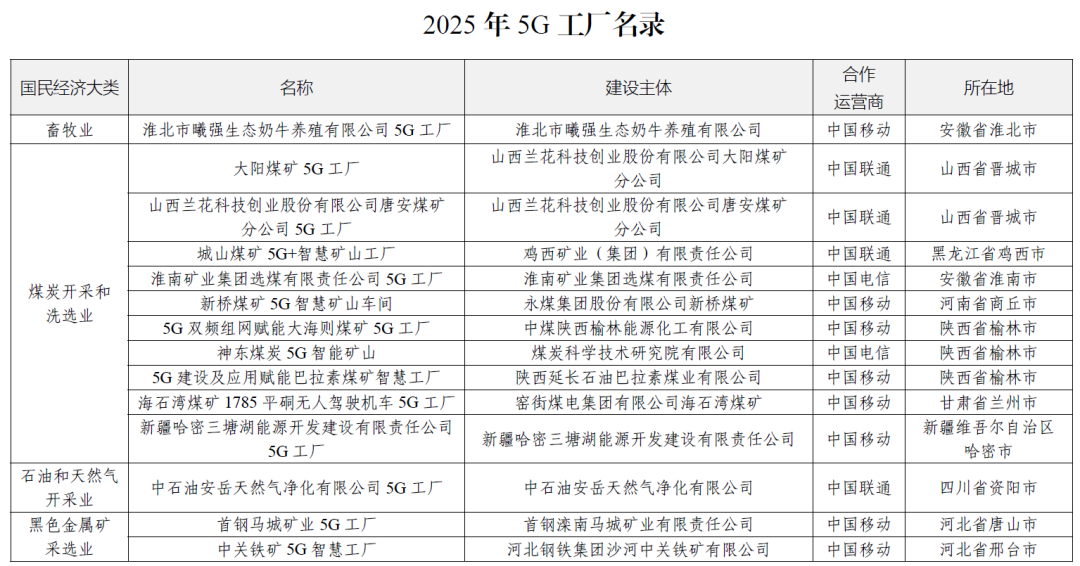 【大河财立方消息】 9月8日消息,工业和信息化部办公厅日前印发2025年5G工厂名录。经地方推荐,专家评审以及公示等程序,48个行业560个项目入选2025年5G工厂名录。