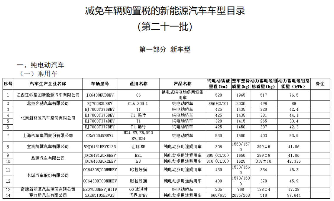 附名单: 减免车辆购置税的新能源汽车车型目录(第二十一批).doc
