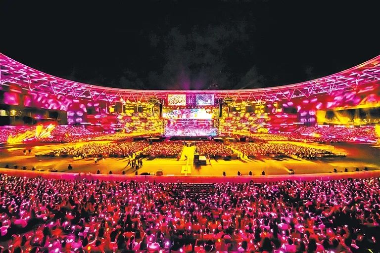 郑州奥林匹克中心内,万千乐迷现场观看演唱会。