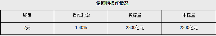 【大河财立方消息】 9月12日,央行开展2300亿元7天期逆回购操作,投标量2300亿元,中标量2300亿元,操作利率为1.40%,今日有1883亿元逆回购到期,当日实现净投放417亿元人民币。
