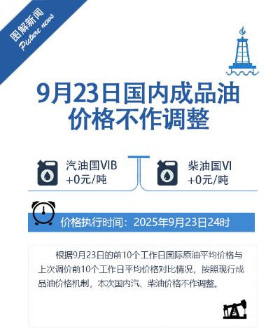 【大河财立方消息】 国家发展改革委9月23日消息,根据前10个工作日国际原油平均价格与上次调价前10个工作日平均价格对比情况,按照现行成品油价格机制,本次国内汽、柴油价格不作调整。
