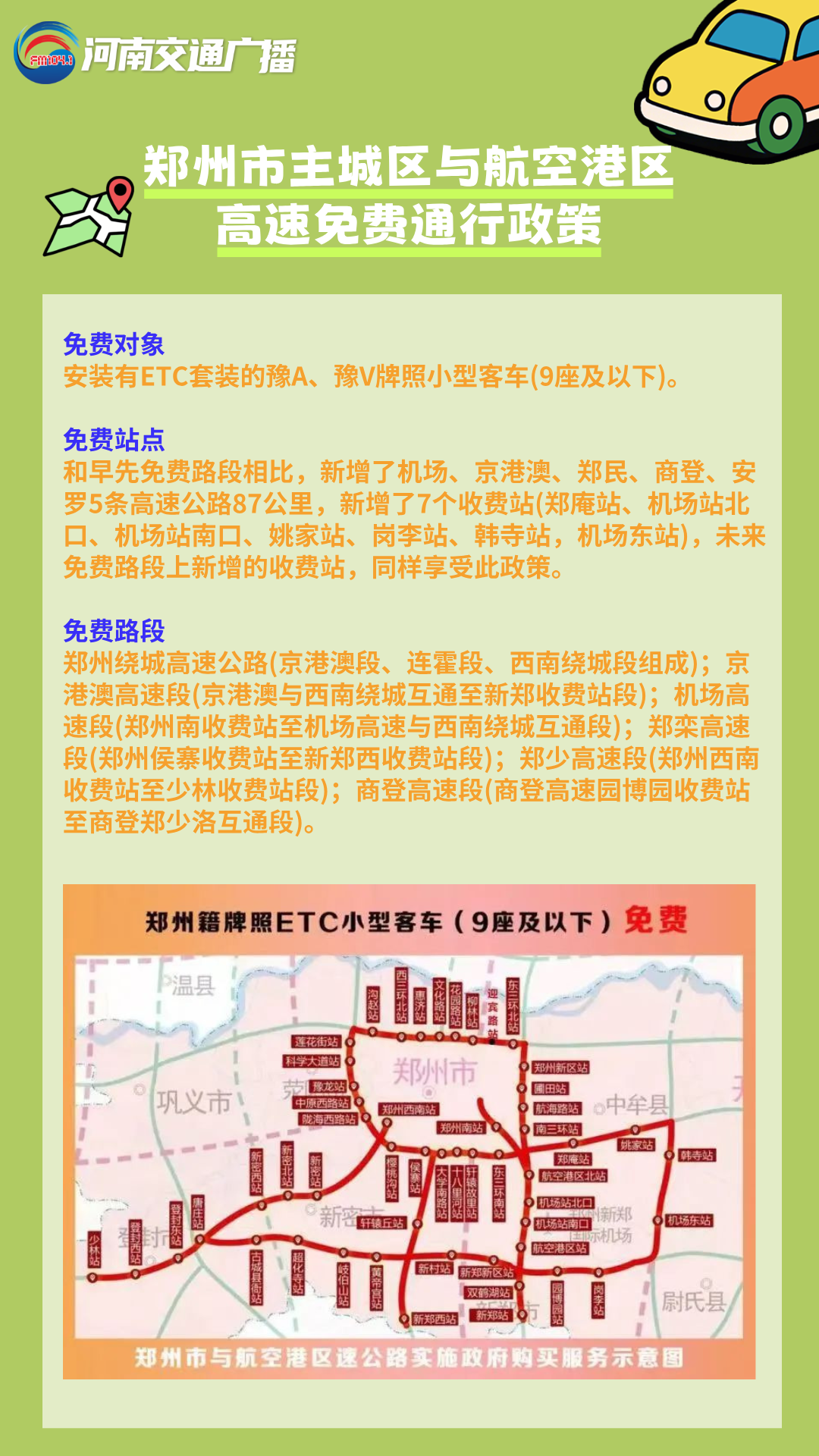 郑州市主城区与航空港区高速免费通行政策