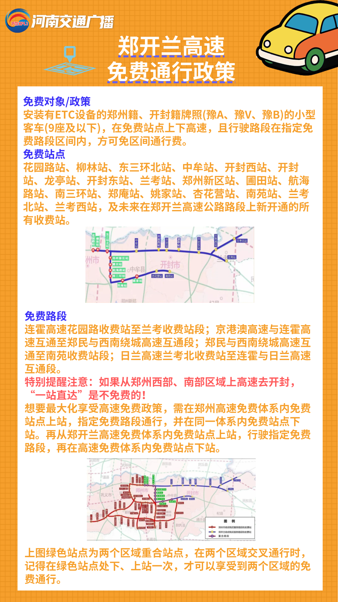 郑开兰高速免费通行政策