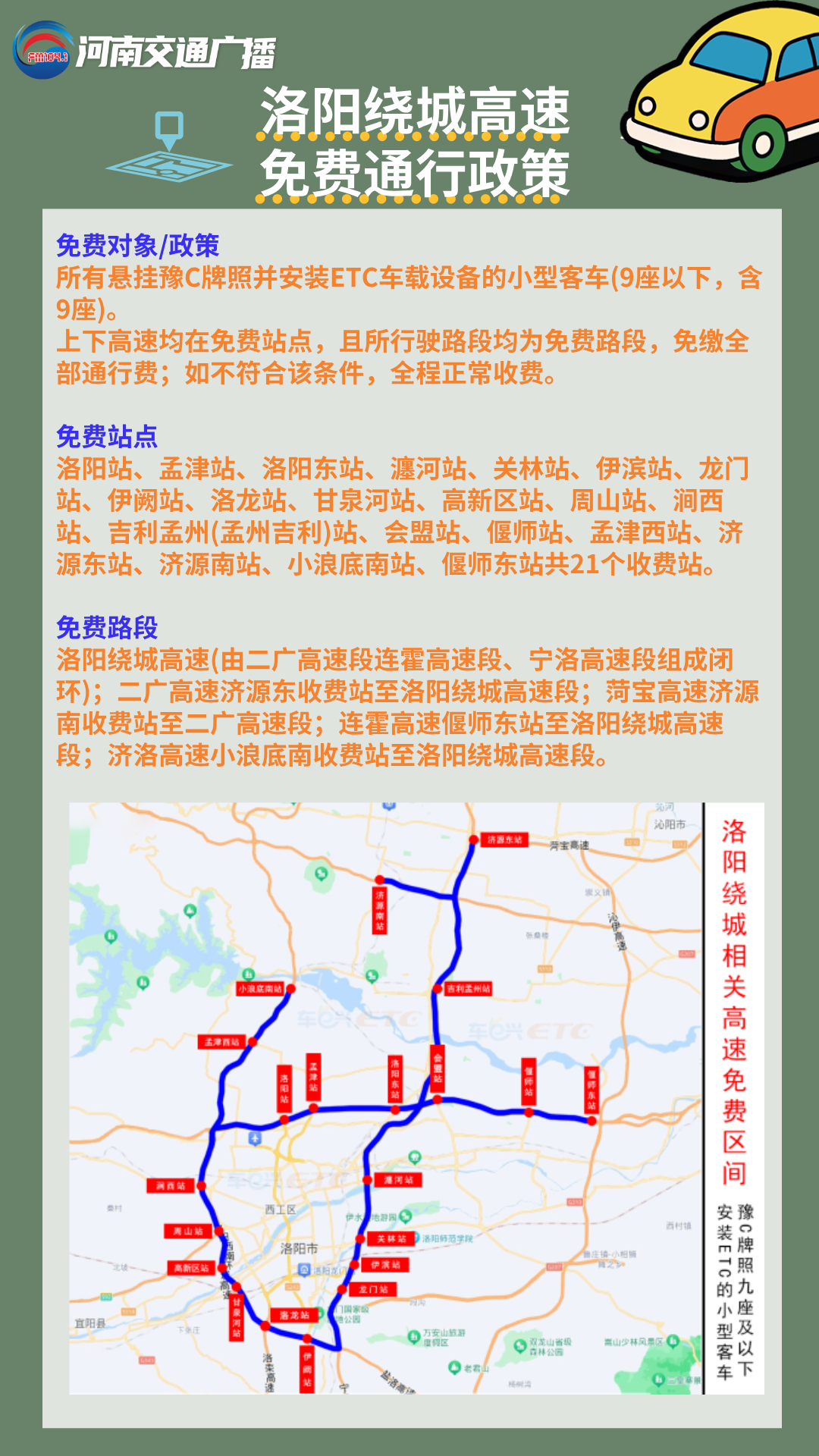 洛阳绕城高速免费通行政策