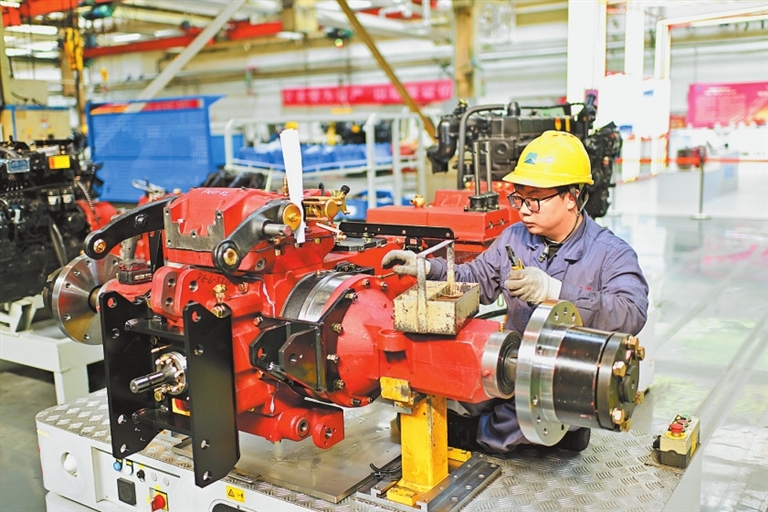 一拖股份工作人员操作生产设备。
