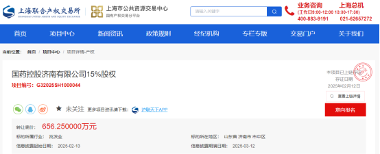 【大河财立方 记者 王鑫】2月13日,上海联合产权交易所披露,国药控股济南有限公司15%股权挂牌转让。